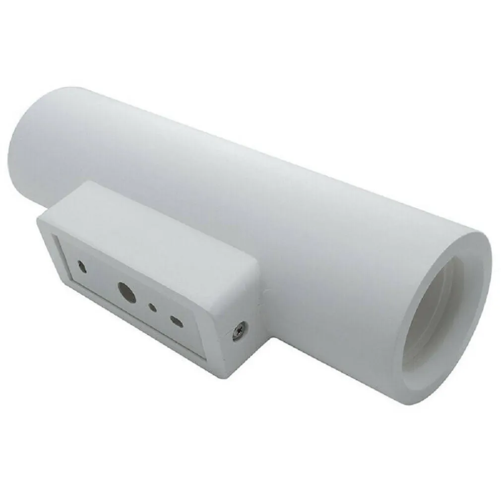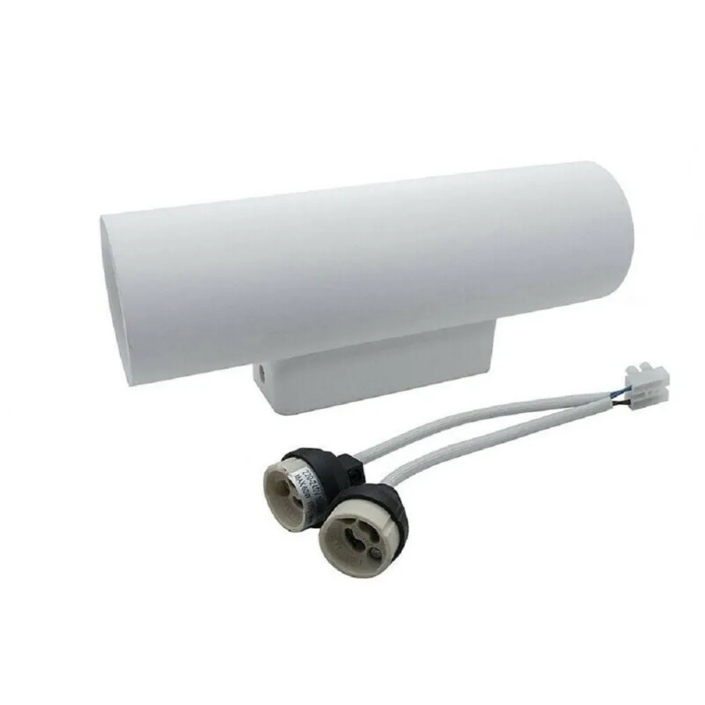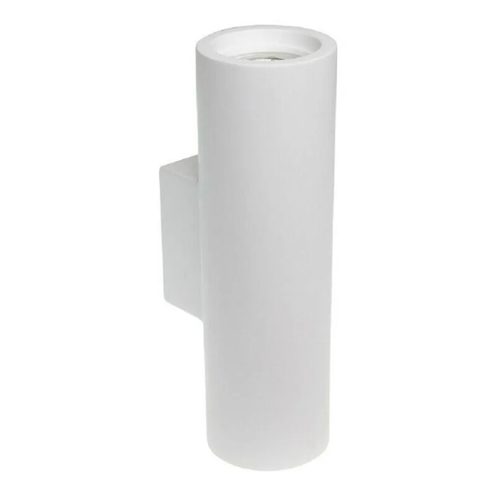 Applique da parete in gesso di forma cilindrica dotato di doppio attacco gu10. Realizzato interamente in gesso di colore bianco. Grazie al design moderno è in grado di integrarsi in qualsiasi tipo di ambiente poiché si potrà tinteggiare del colore desiderato. Questo applique ha la particolarità di emettere un doppio fascio luminoso sia verso l’alto sia verso il basso, generando un effetto ottico particolare sulla parete dove è installata.