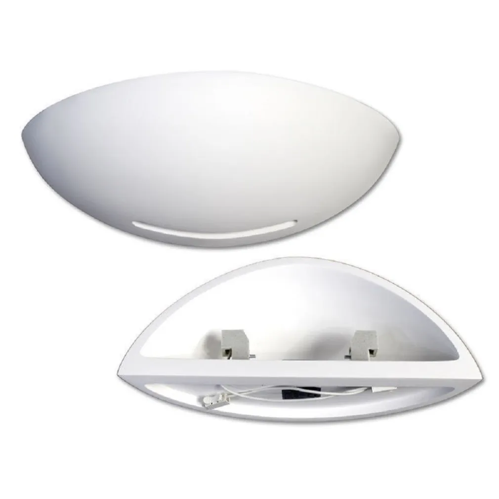 Applique da parete a forma di mezza luna. Struttura completamente in gesso verniciabile. La base grezza consente di scegliere se lasciarli bianchi o verniciarli del colore desiderato. Facile da fissare con le viti in dotazione.