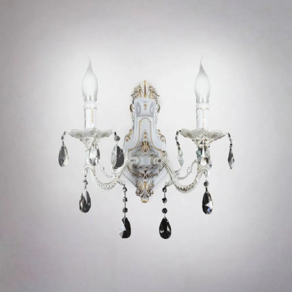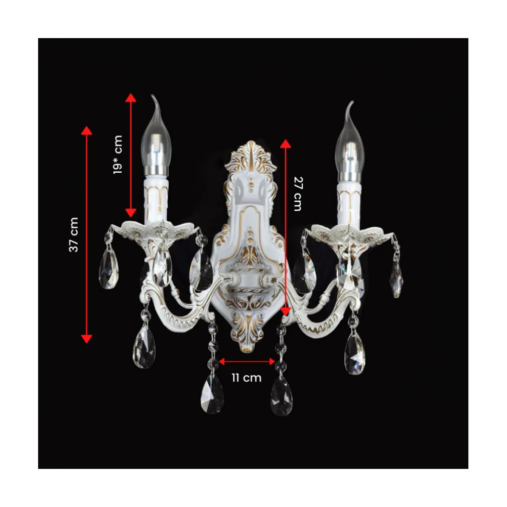 Applique da parete 2 bracci, attacco 2xE14 (lampadine non incluse), impreziosito da gocce pendenti vetro effetto cristallo. Crea un ambiente confortevole e classico con questa innovativa lampada da parete dal design vintage. Impreziosita da pendenti a forma di goccia in vetro effetto cristallo. I materiali utilizzati di alta qualità ne garantiscono una performance superiore e durata nel tempo. Le sue dimensioni la rendono facile da installare, semplice da utilizzare e facile da pulire. Questa lampada è adatta per camere da letto, salone, studio, corridoio, ecc.