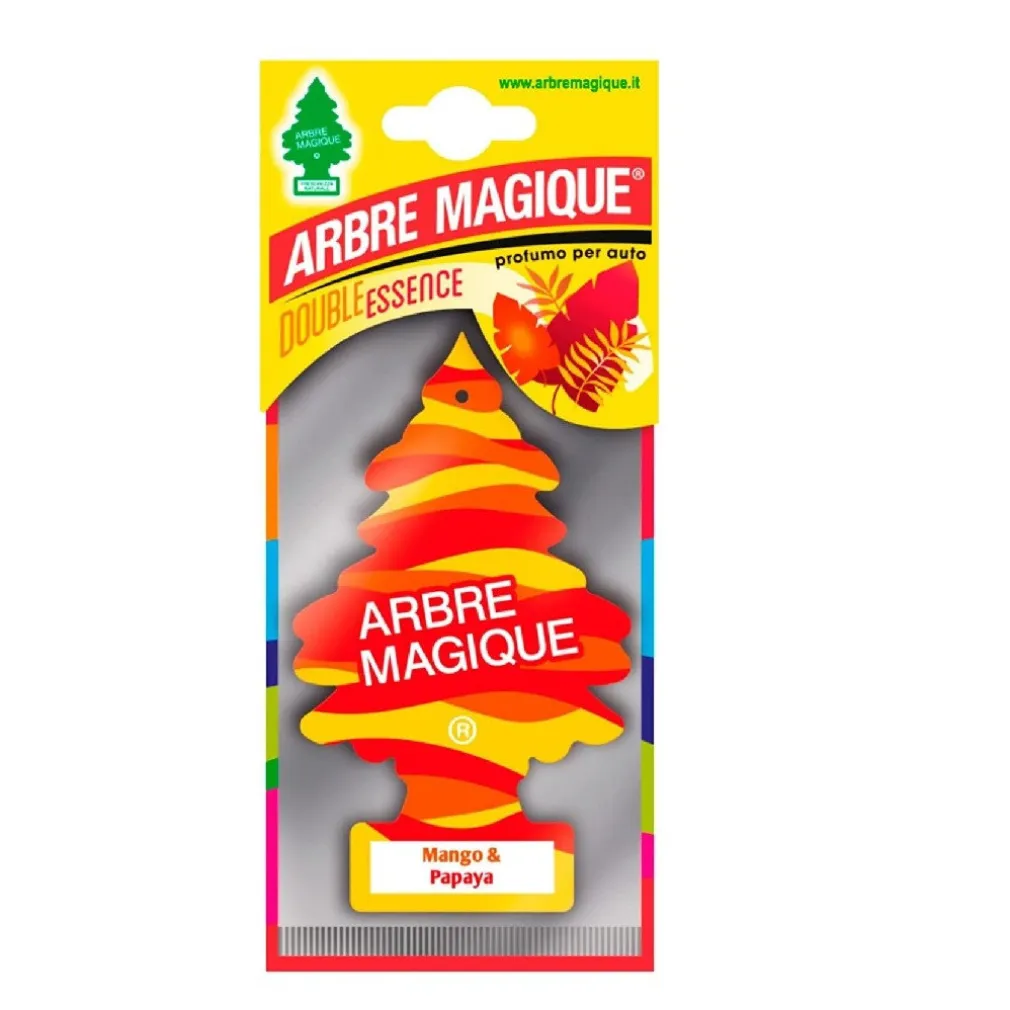 Arbre magique mono profumatore auto fragranza Mango & Papaya, profumazione Fresca e Leggera, durata fino a 7 settimane.