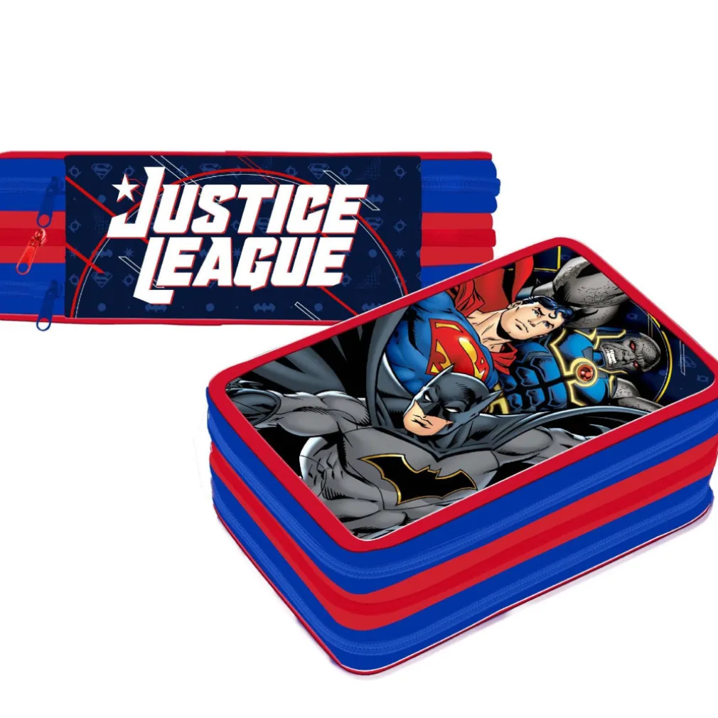 ASTUCCIO 3 ZIP CERNIERE PORTAPASTELLI MATITE SCUOLA ELEMENTARE JUSTICE LEAGUE