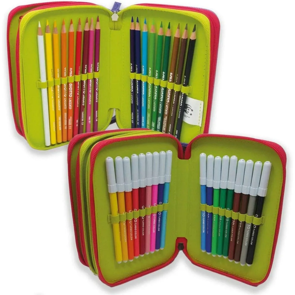 ASTUCCIO WWF PORTA PASTELLI PENNE 3 ZIP COMPLETO CANCELLERIA COLLEZIONE SCUOLA