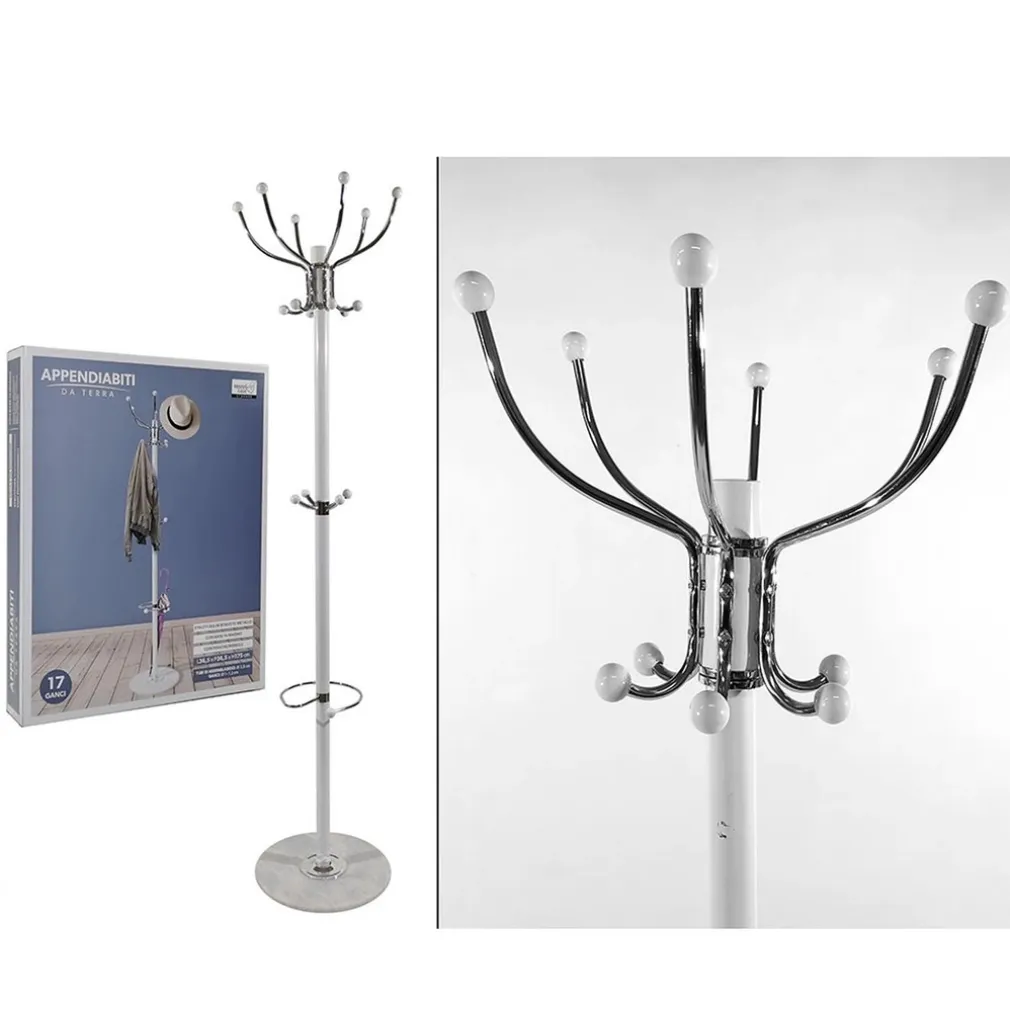Scopri subito il nuovo appendiabiti da terra in metallo bianco e cromato che trasforma l’ingresso della tua casa in un ambiente elegante e funzionale. Con i suoi 17 ganci in metallo cromato e la solida base in marmo, questo attaccapanni a piantana è il complemento d’arredo che non può mancare in nessuna casa moderna. Non perdere l’occasione di rendere il tuo ingresso ordinato e raffinato: clicca e aggiungilo subito al carrello!