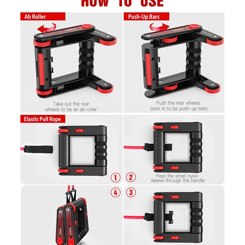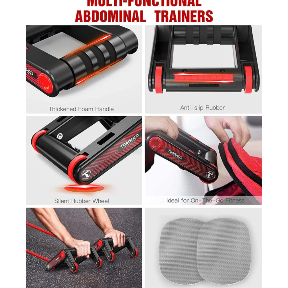 - Design unico 3-in-1: la combinazione di rulli con ruota AB e barre per push up, anch’essa dotata di due fasce di resistenza, fornisce 3 metodi di utilizzo: rulli per ruote AB, barre per push up e fune di trazione. La doppia ruota è diversa dalla tradizionale ruota singola per addominali. Le mani possono regolare diverse angolazioni per esercitare i muscoli dell’intero addome , sperimentare una nuova modalità di fitness e realizzare davvero una macchina multiuso ♔ Pieghevole, leggero e portatile: la staffa a due ruote anteriore e posteriore di questa attrezzatura per esercizi AB può essere piegata. Il materiale leggero e il design pieghevole ti fanno sentire libero di portarlo in ufficio, in vacanza o in viaggio d’affari.