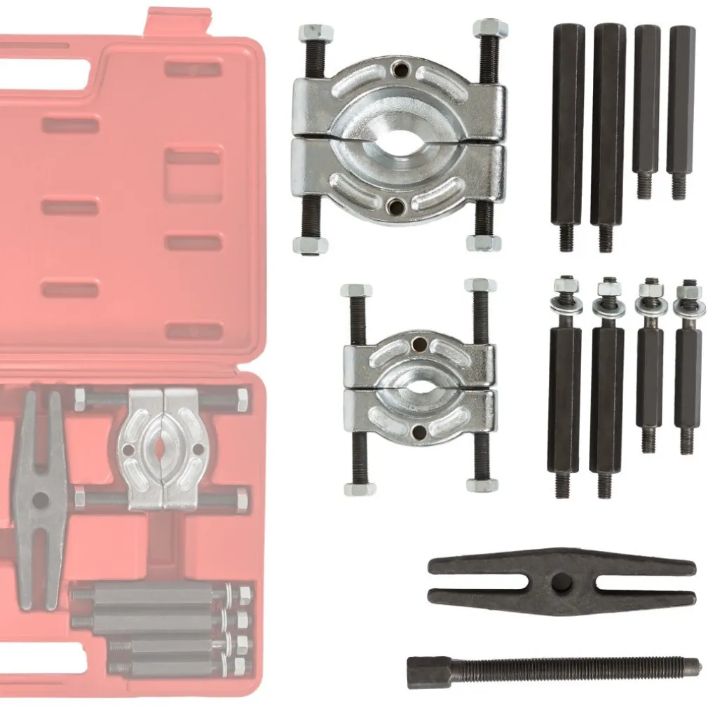Questo kit permette di estrarre facilmente cuscinetti, anelli interni, volani, tamburi e altri componenti fissi. Adatto per officine professionali e hobbisti. Molto utile e pratico da utilizzare, il tutto riposto in una comoda valigetta.