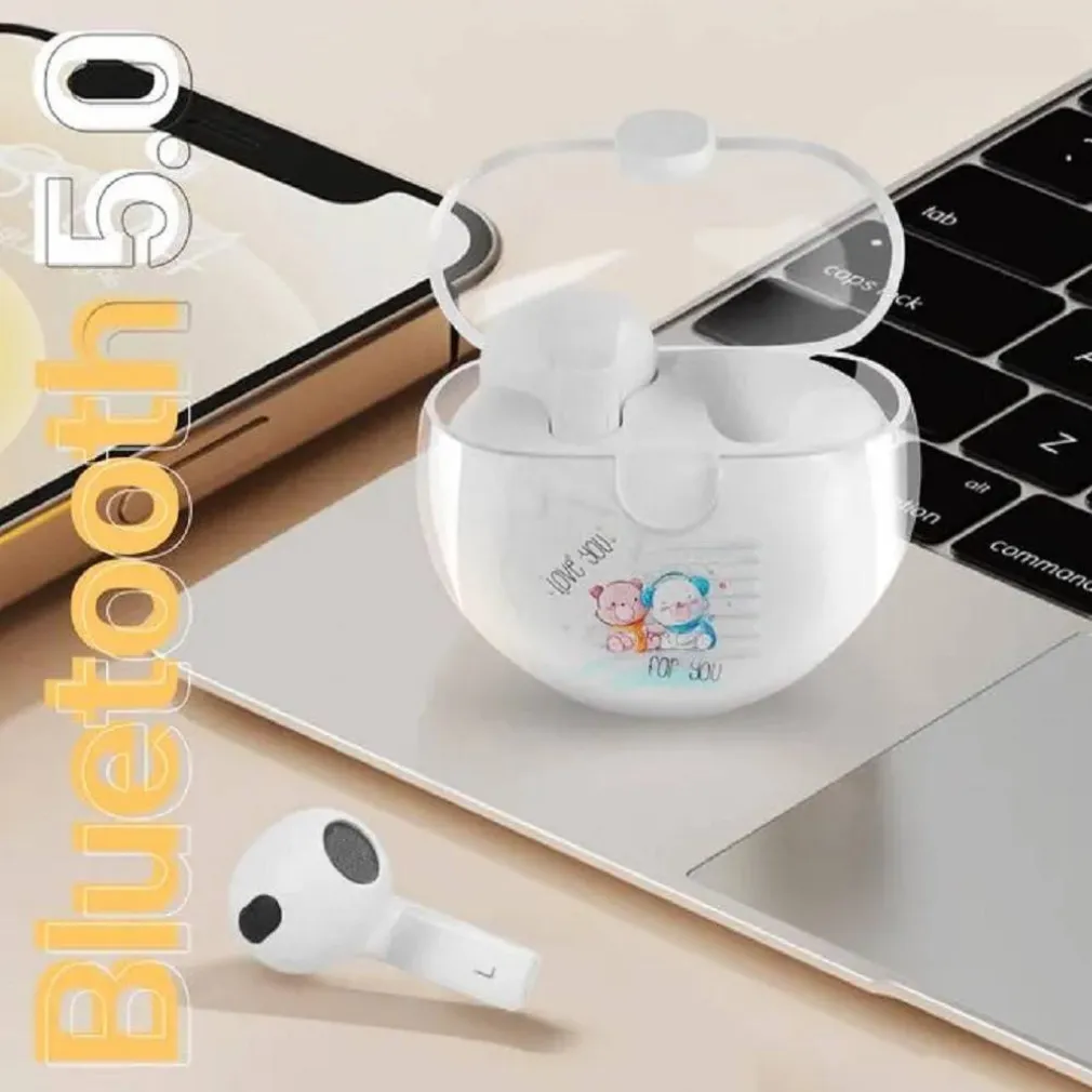 Auricolari Bluetooth per un ascolto confortevole della tua musica su base giornaliera. Connessione wireless stabile e veloce con tecnologia Bluetooth 5.0. Un’esperienza audio immersiva con una qualità del suono eccezionale. Controlli touch micro e integrati per gestire chiamate e musica. Scatola di ricarica con design trasparente con motivo cub, aggiungendo un tocco di fascino ai tuoi auricolari. Gamma di 4,5 ore, ricaricabile fino a 5 volte nella custodia di ricarica (intervallo combinato di 22 ore). Design compatto per accompagnarti ovunque tu vada. Ricaricare rapidamente la custodia di ricarica tramite la connessione USB Type C (cavo incluso).