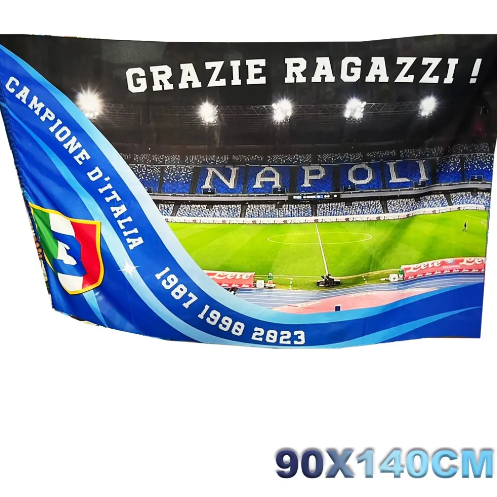 Mostra il tuo amore per il Napoli con le nostre Bandiere da Calcio! Per aiutare i veri tifosi ad alzare la loro passione al massimo durante ogni incontro: ordina subito la tua bandiera e addobba la tua casa e festeggia la tua squadra del cuore!