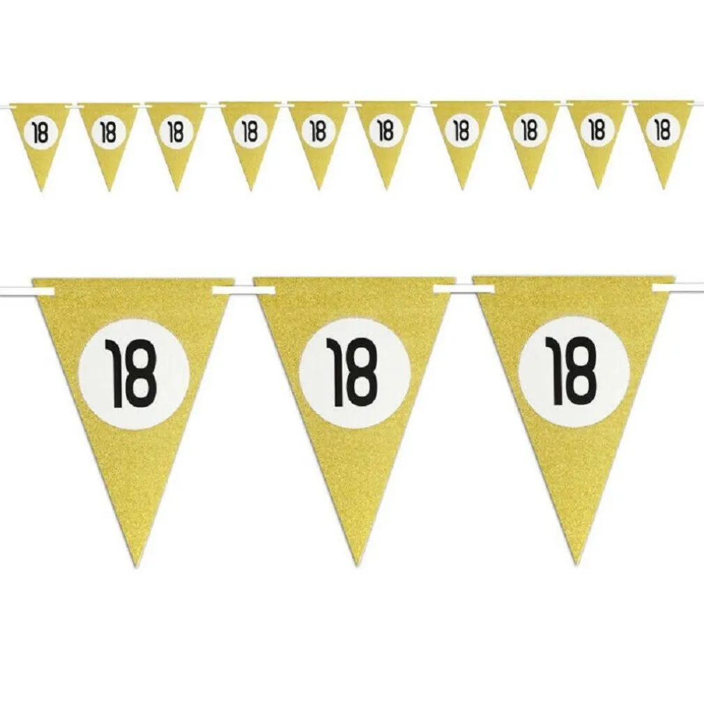 Rendi indimenticabile il tuo compleanno o il tuo anniversario con questo sfavillante set da 10 bandierine triangolari color oro da appendere per addobbare in maniera unica ed originale la tua casa o il tuo giardino in occasione di un evento speciale.