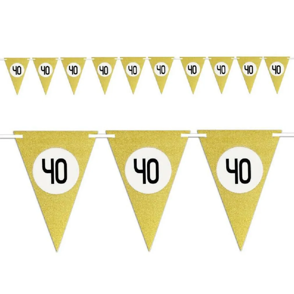 Rendi indimenticabile il tuo compleanno o il tuo anniversario con questo sfavillante set da 10 bandierine triangolari color oro da appendere per addobbare in maniera unica ed originale la tua casa o il tuo giardino in occasione di un evento speciale.