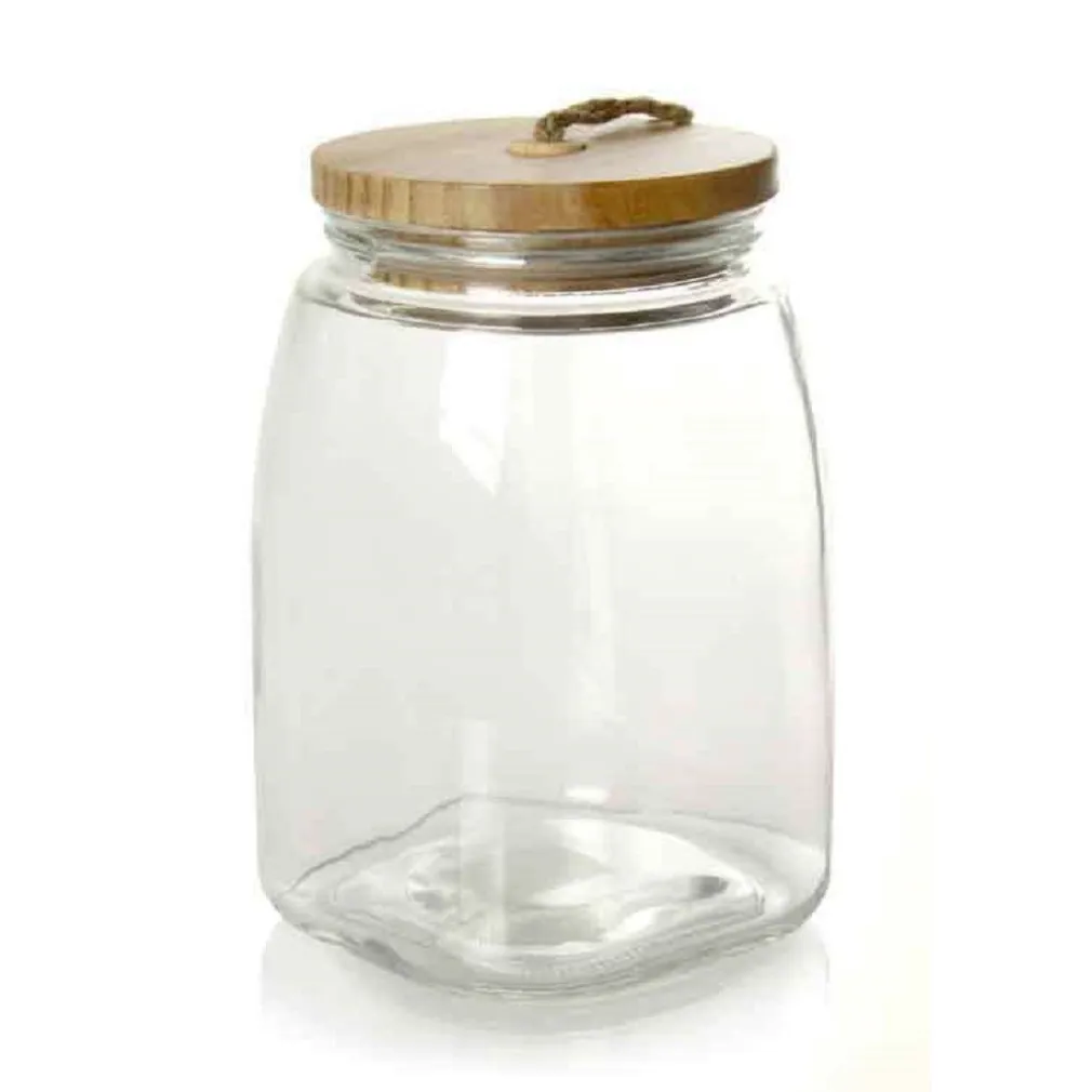 BARATTOLO 22CM IN VETRO TAPPO IN LEGNO ERMETICO CONTENITORE BASE QUADRATA 728358