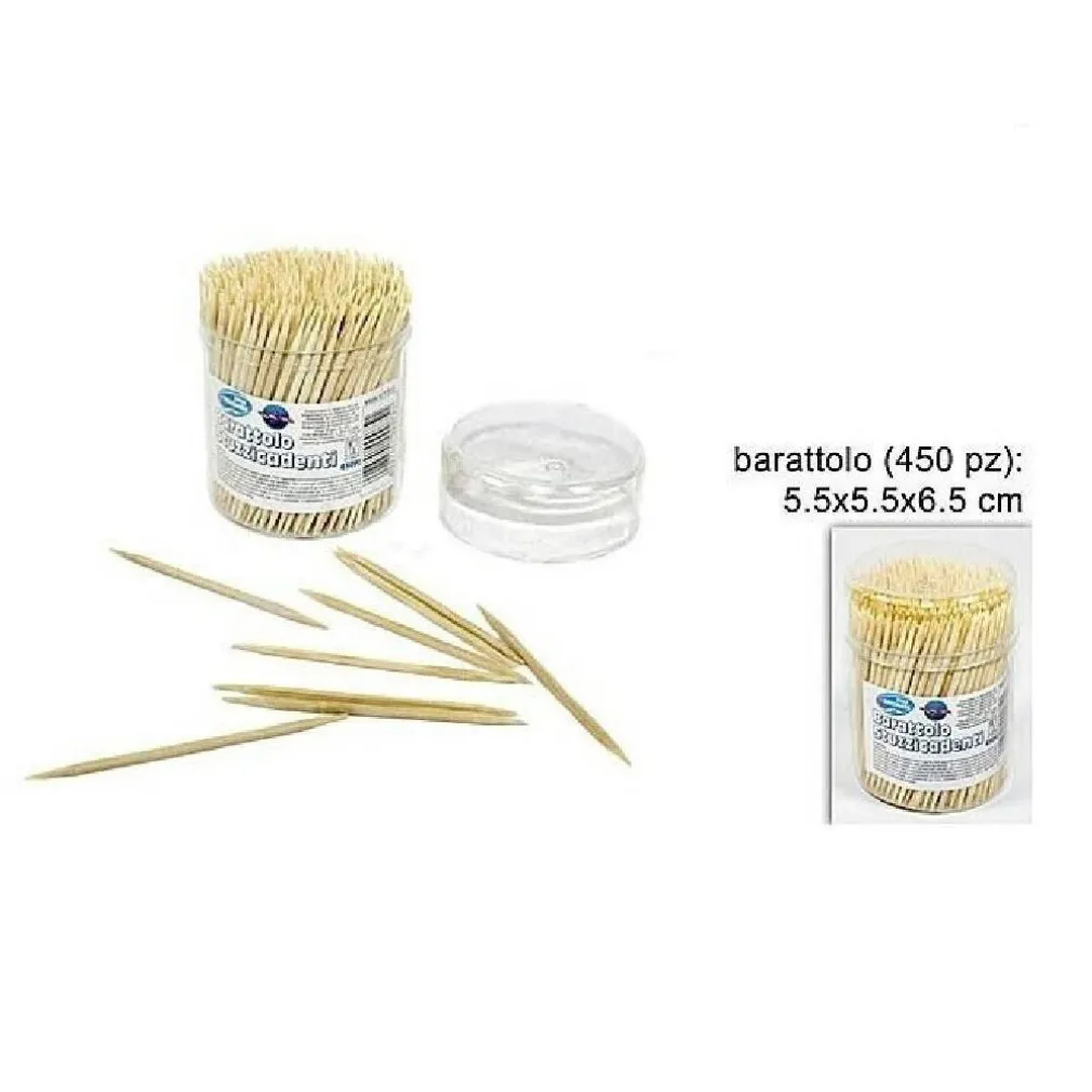 BARATTOLO DA 450 PEZZI STUZZICADENTI IN LEGNO DOPPIA PUNTA CUCINA DENTI