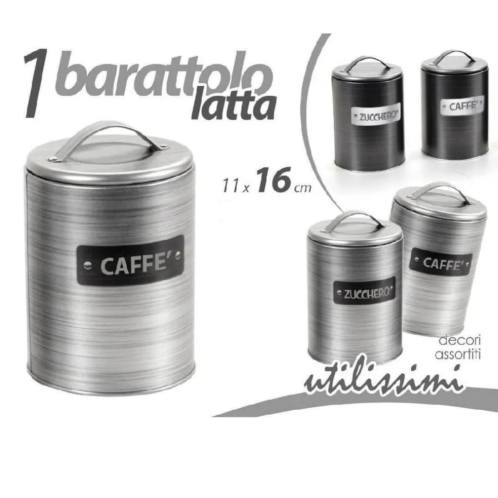 Barattolo Contenitore Zucchero/Caffè in Latta Satinato Moderno 11x16cm 759819