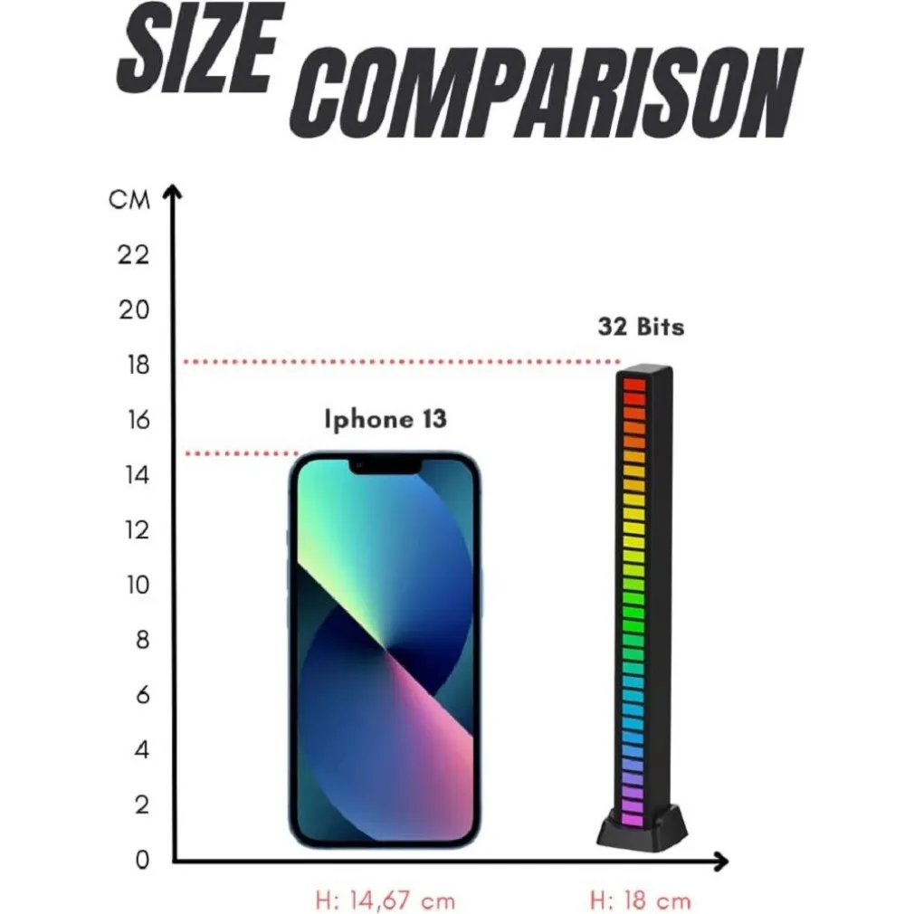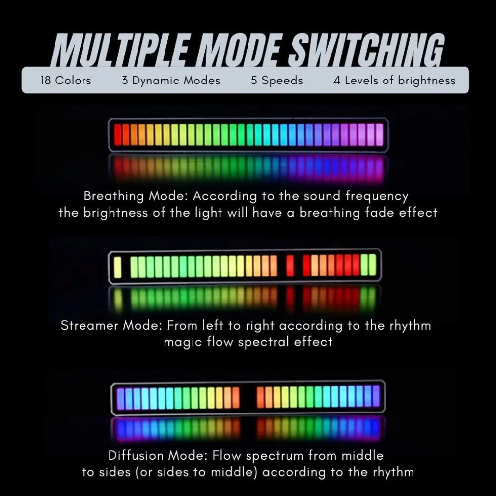 Ha un microfono pickup integrato ad alta sensibilità, che può rilevare automaticamente i suoni esterni. Con l’algoritmo di guadagno automatico di riduzione del rumore intelligente, regolerà automaticamente la sensibilità del microfono in base alle dimensioni del suono, in modo che la luce del battito non sia troppo bassa o troppo alta quando si accende. La barra luminosa RGB si illumina al ritmo del suono o della musica con un microfono integrato ad alta sensibilità. Raccoglie il suono ambientale per reagire con il suono ambientale. Migliora in modo diverso le tue esperienze di gioco, film, musica e ambiente nel tuo spazio di lavoro o di svago.
