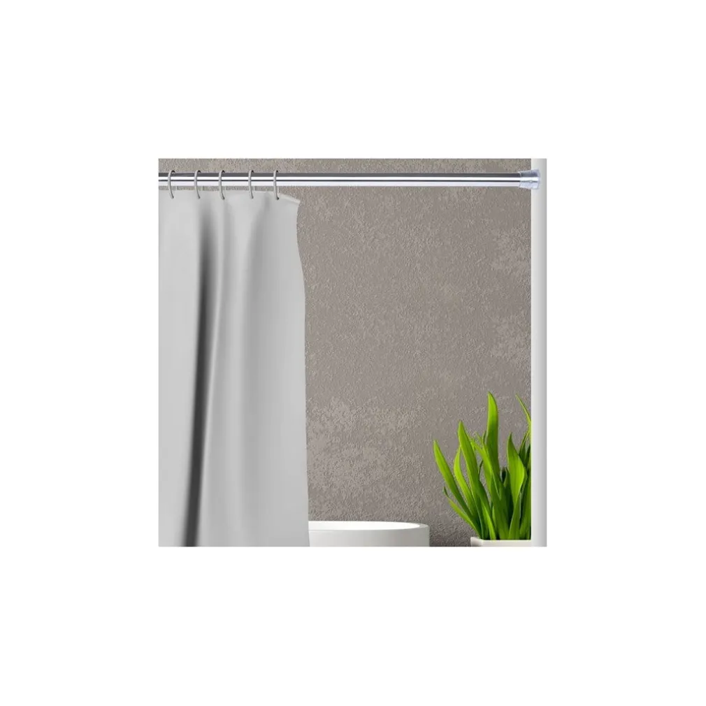 La barra telescopica per tenda da doccia è montabile a parete ed è adatta per bagni. grazie alla sua duttilità può essere utilizzata anche come guardaroba, asta appendiabiti o come separatore in una stanza. La barra è estensibile da 125 cm fino a 220 cm. Il suo diametro è 2,2 cm. Il montaggio è facile, senza viti e trapanatura.