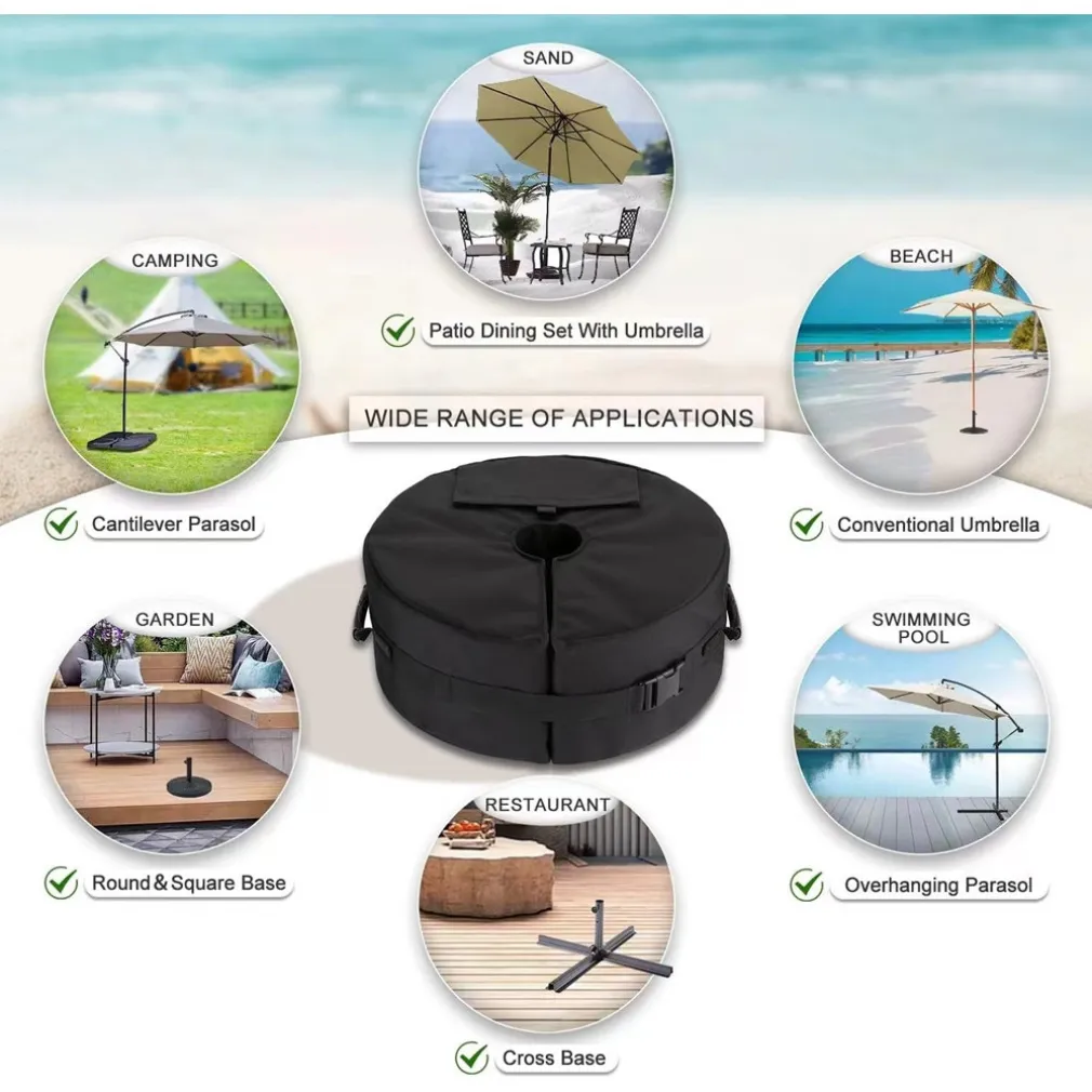 A differenza delle basi tradizionali in plastica o metallo, questa base è più leggera da trasportare quando vuota e più stabile una volta riempita con sabbia. Inoltre, il design con apertura laterale facilita l’inserimento e la rimozione del palo dell’ombrellone.