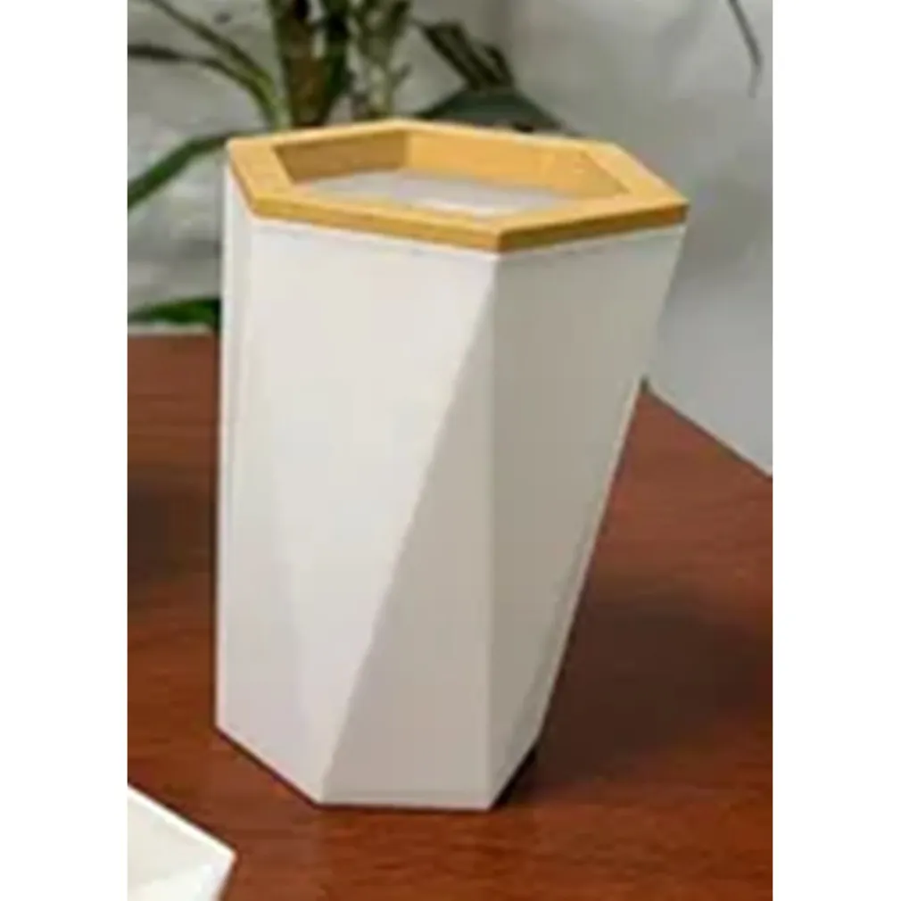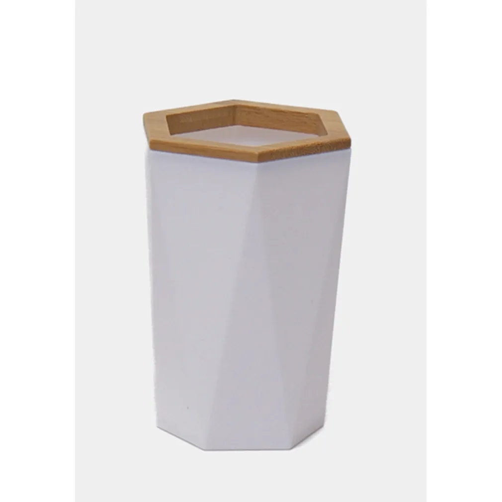 Bicchiere Porta Spazzolini a Cilindro Esagonale Geometrico Bianco Legno da Bagno 10837