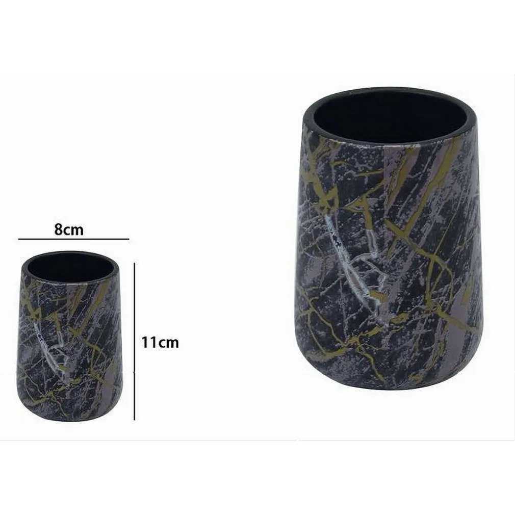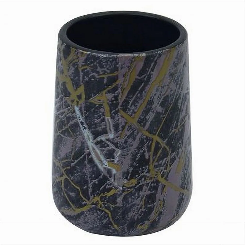 BICCHIERE PORTA SPAZZOLINI DENTIFRICIO BAGNO EFFETTO MARMORIZZATO NERO ORO 59892