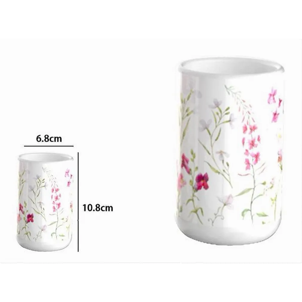 - 1 x Bicchiere porta spazzolino bianco con fiori in ceramica