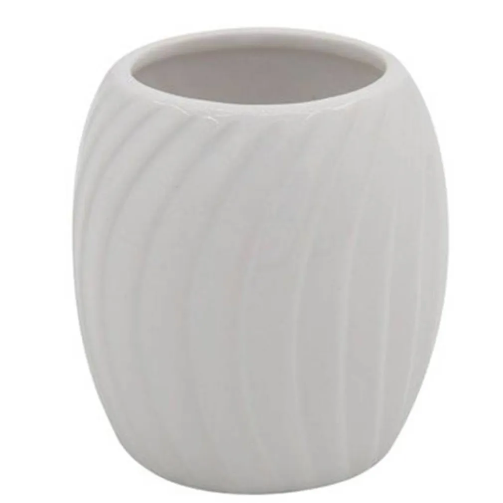 Arricchisci il tuo bagno con il Bicchiere porta spazzolini in ceramica rigata bianca, e concediti il lusso di un ambiente che unisce funzionalità e estetica.