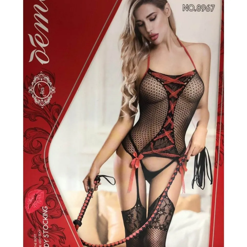 Stupendo body intimo in maglia a rete finissima con profili neri e ricami particolareggiati che mette sensualmente a nudo la vostra silhouette: un mix di forme che vi valorizzerà al massimo, questo intimo è realizzato in materiale elasticizzato che consente di adattarsi perfettamente alle forme del corpo. Il Body si chiude sul retro con un taglio a perizoma che porta questo completo all’apice della sua sensualità… per la donna che vuole intrigare, sorprendere e farsi desiderare dal proprio partner.