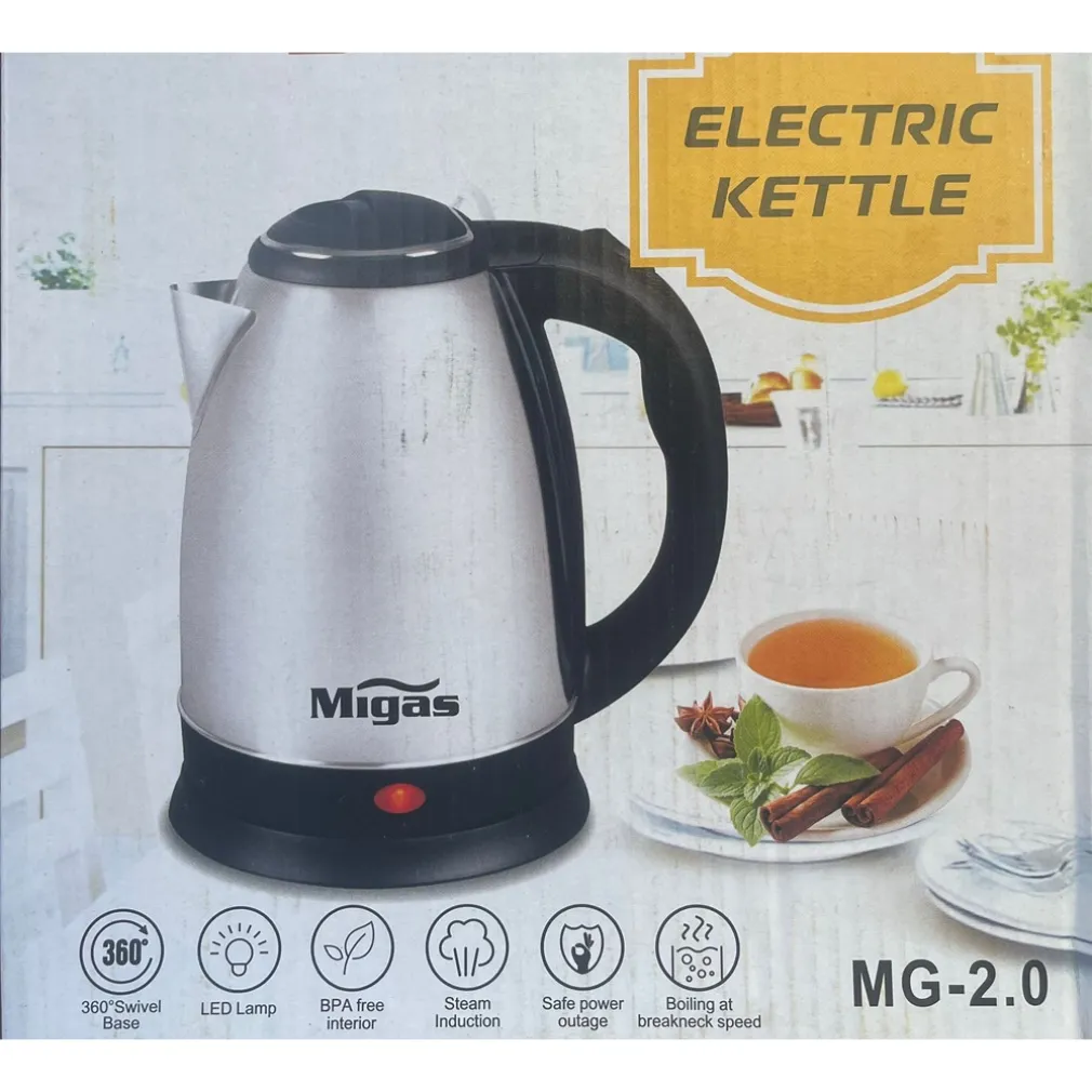 Vuoi preparare la tua bevanda calda preferita in pochi minuti? Questo BOLLITORE ELETTRICO 2LT IN ACCIAIO 1500W PER ACQUA CALDA RESISTENTE SPEGNIMENTO AUTOMATICO – l’oggetto nell’immagine è un bollitore elettrico mg-2.0 – è progettato per offrirti prestazioni elevate, massima sicurezza e una comodità che ti farà desiderare di usarlo ogni giorno. Guarda il prodotto, immagina la velocità con cui potrai riscaldare l’acqua e goderti ogni momento con un tocco professionale e affidabile
