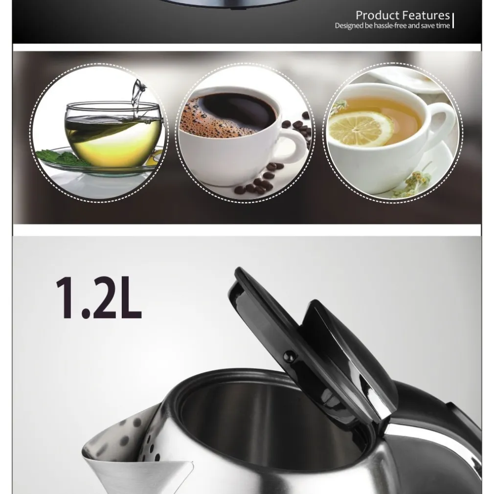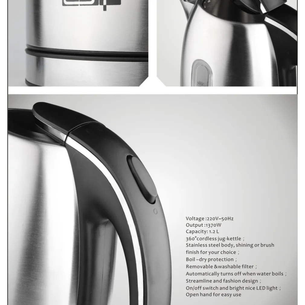 La sua elevata potenza di 1370W fa si che l’acqua si riscaldi in pochi minuti, arrivato al punto di ebollizione il bollitore si spegnerà in automatico, la spia rossa posteriore segnalerà il suo spegnimento, questo rende il bollitore sicuro nel suo utilizzo.