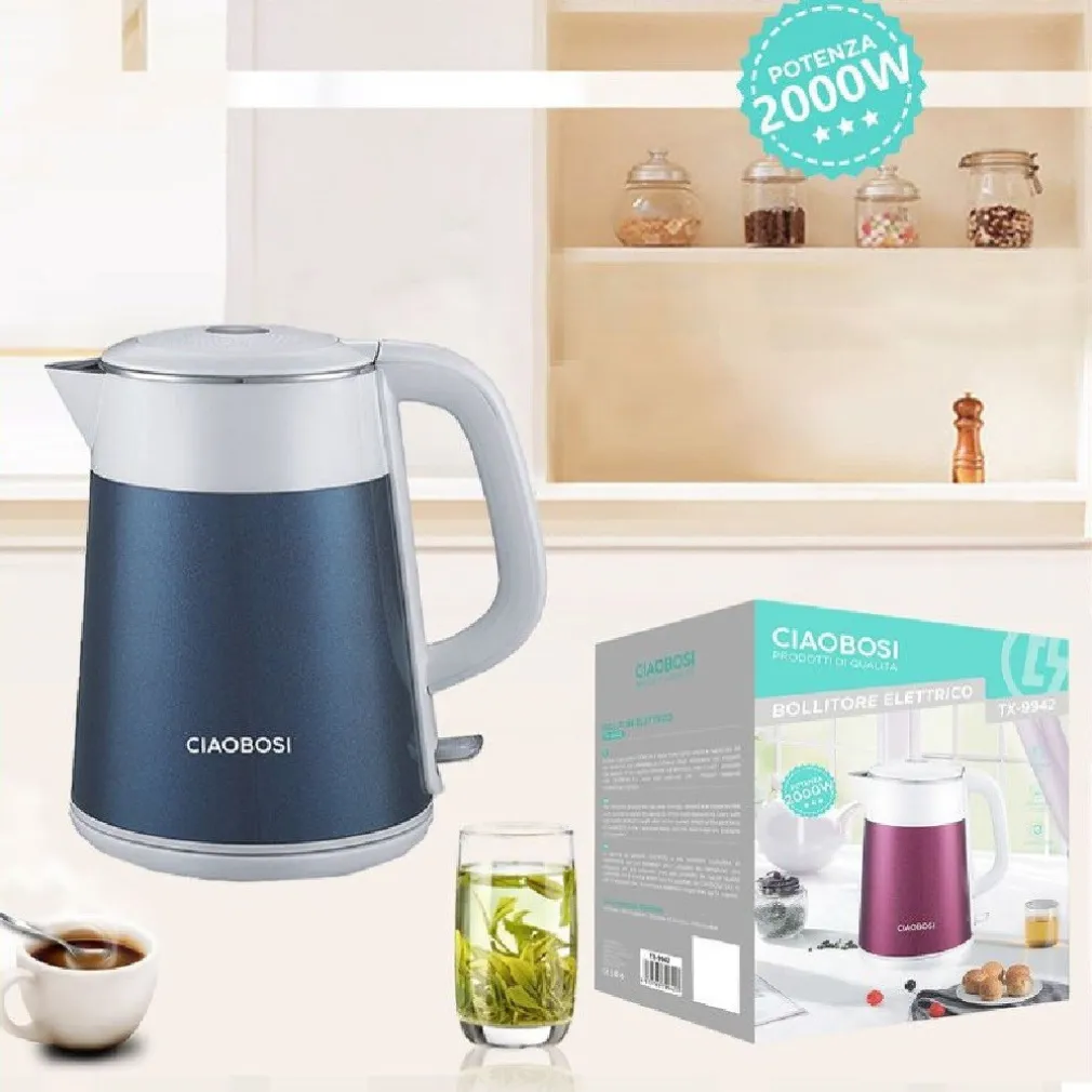 Bollitore Elettrico Capacità 2 Litri 2000W Acqua Ufficio Viaggi Tx-9942