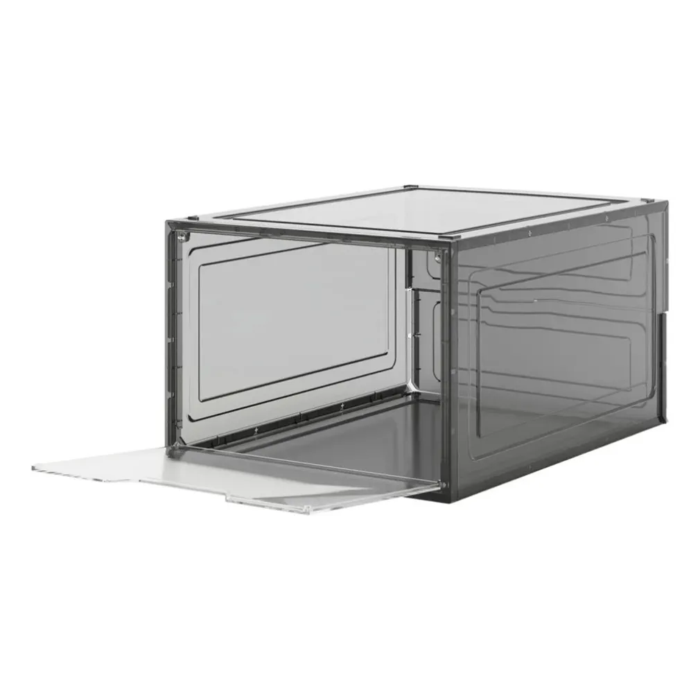 Grazie alla trasparenza in nero, il contenitore dona un tocco sofisticato al tuo guardaroba e ti permette di identificare immediatamente la calzatura all’interno, risparmiando tempo ogni giorno.