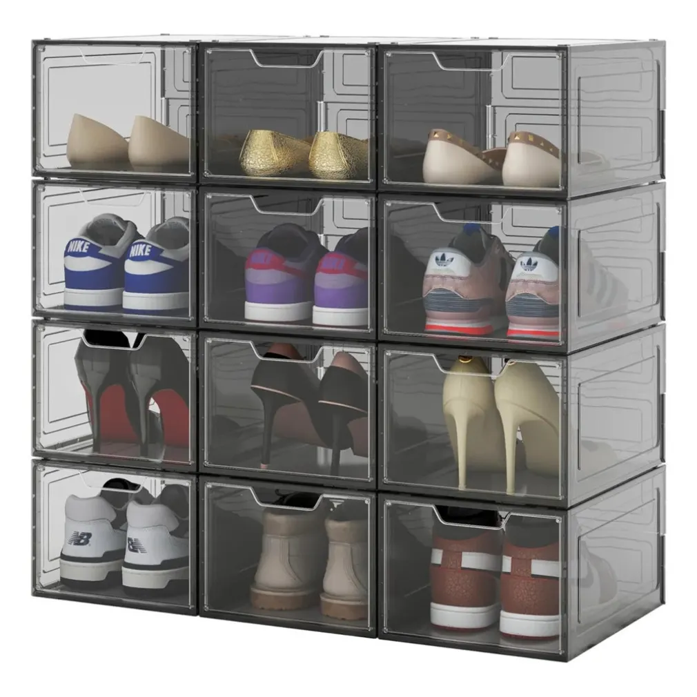 Scopri subito il Box Contenitore Per Scarpe Calzature Inpilabile: compatto, resistente, trasparente in nero, ideale per chi desidera mettere ordine nella scarpiera o valorizzare un armadio con stile. Un solo sguardo e te ne innamorerai. Perfetto per l’uso quotidiano o stagionale, è il tuo alleato definitivo per mantenere le calzature protette e sempre in vista.