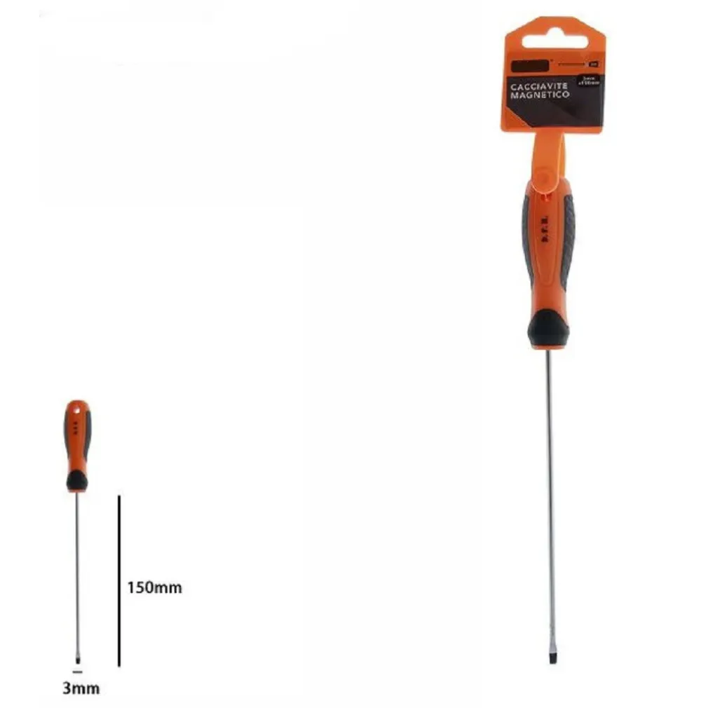 Ogni confezione include il Cacciavite Giravite Magnetico Punta Taglio 3×150 mm con l’impugnatura ergonomica 07425. Un utensile essenziale per il tuo kit di attrezzi, pronto a affrontare una vasta gamma di compiti.