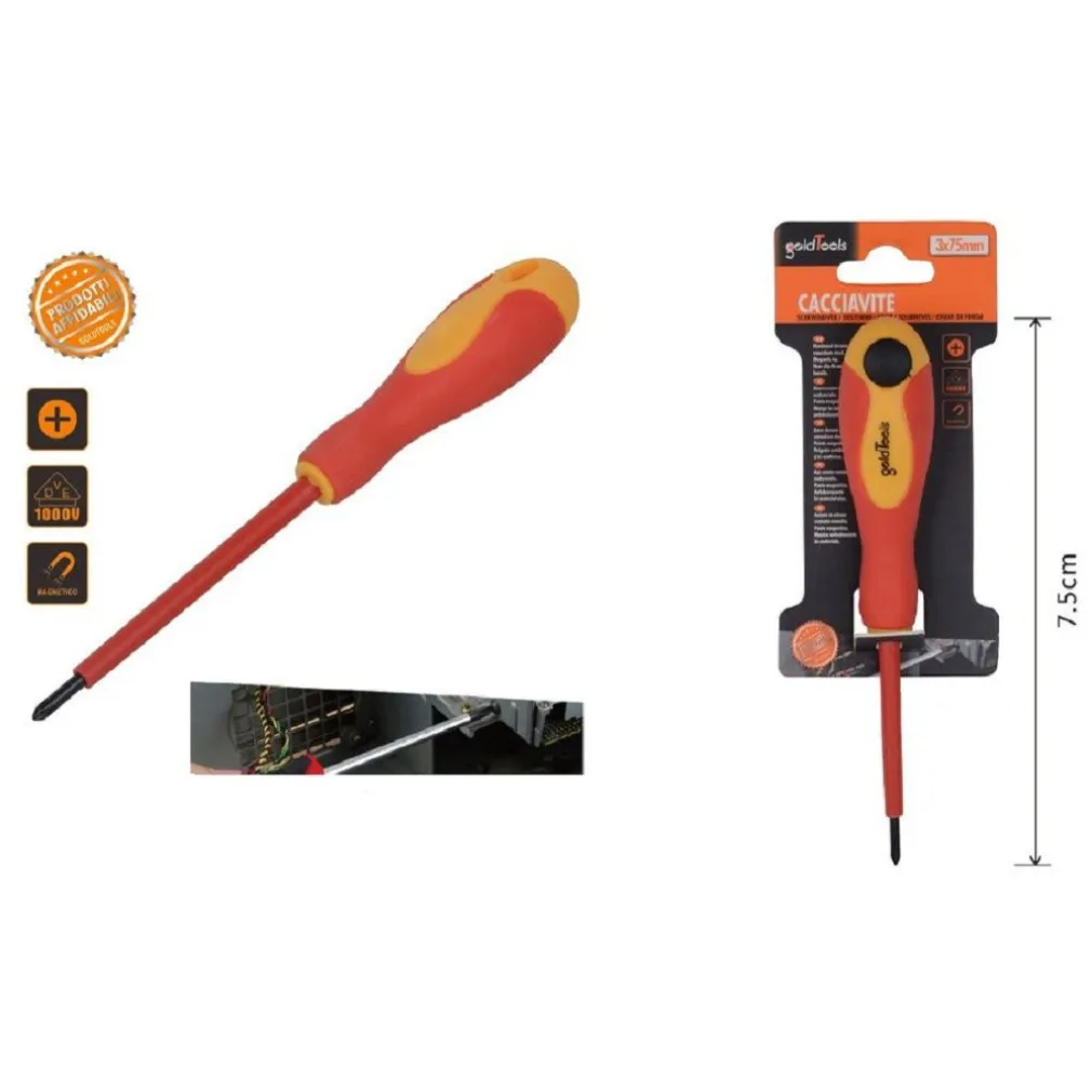 Con una lunghezza di 75 mm e un design a croce, questo cacciavite è ideale per una varietà di applicazioni, dalla lavorazione del legno al montaggio elettromeccanico. Inoltre, la sua capacità di isolamento fino a 1000V lo rende adatto anche per lavori su apparecchiature elettriche sotto tensione.