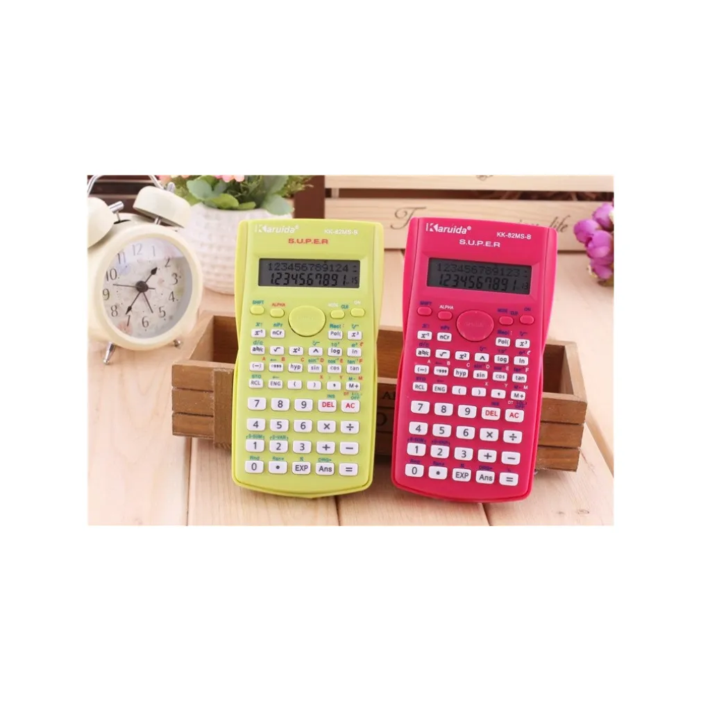 Calcolatrice scientifica dual-power vi aiuterà attraverso il vostro studio accademico e la vostra vita professionale. con una guida sulla custodia rigida protettiva con alimentazione a batteria e energia solare. la calcolatrice scientifica soddisfa tutte le funzioni matematiche di base e ha un display chiaro a 10 cifre.