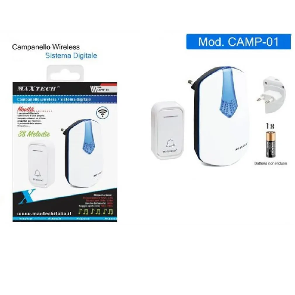 Campanello wireless ad un trasmettitore pensato per porte d’ingresso di case, negozi ed uffici ma non solo. Può rivelarsi molto utile in casa nelle camere di persone anziane, disabili, bambini ed ammalati. Ricevitore con spina già incorporata e trasmettitore con batteria NON inclusa.