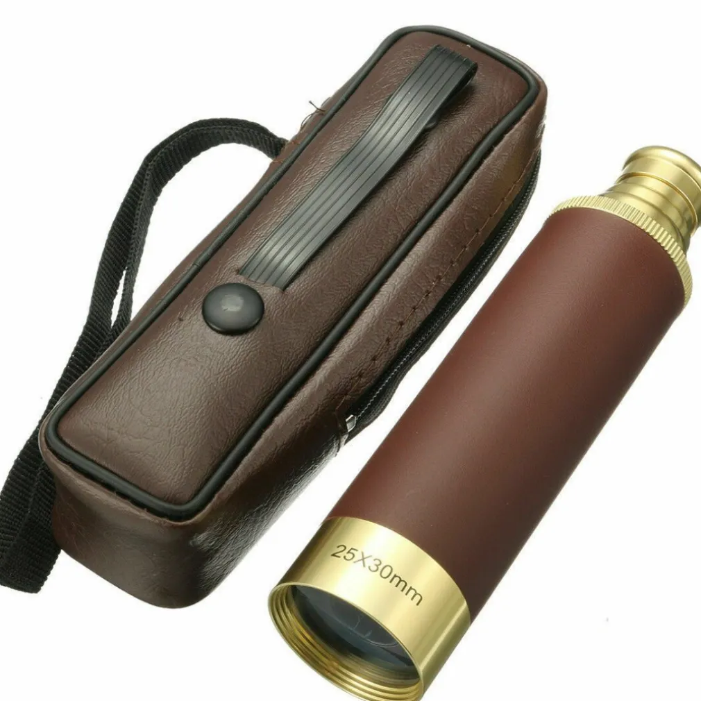 CANNOCCHIALE MONOCOLO 25X30MM VINTAGE DORATO PELLE NAVIGAZIONE VIAGGI