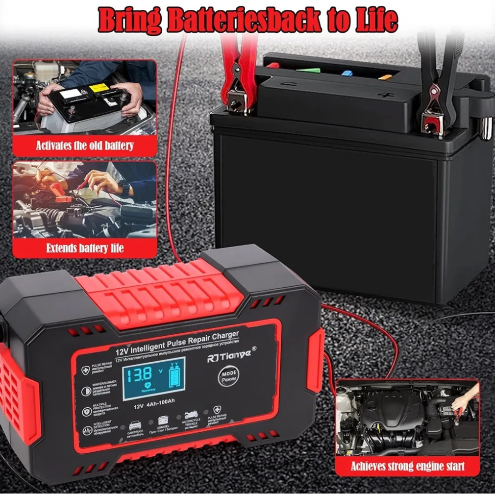 - Riparazione a impulsi altamente efficiente: rileva e ripara solfatazione e stratificazione acida, migliorando l’avviamento del motore.