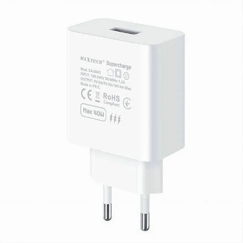 Caricatore Caricabatterie da muro per Smartphone. Garantisce una ricarica rapida e sicura al cellulare. Collegalo ad una presa da muro e poi al cellulare. Design compatto per portarlo con te ovunque. Ricarica facilmente i tuoi dispositivi mobili con questo caricabatterie con presa USB. Fornisce una potenza di 40w che assicura una ricarica rapida e sicura. Dal formato compatto e leggero, è un accessorio indispensabile per ricaricare tutti i tuoi dispositivi elettronici ogni giorno, potrai portarlo sempre con te o lasciarlo a casa o in ufficio. Inserisci semplicemente l’alimentatore nella presa domestica e collega un cavo USB. Il caricabatterie USB per uso domestico è dotato di una porta singola. Si tratta di una soluzione di ricarica versatile, estremamente efficiente, compatta e ideale per l’applicazione. Ricarica il tuo dispositivo in un attimo con il caricabatterie Super Charge.