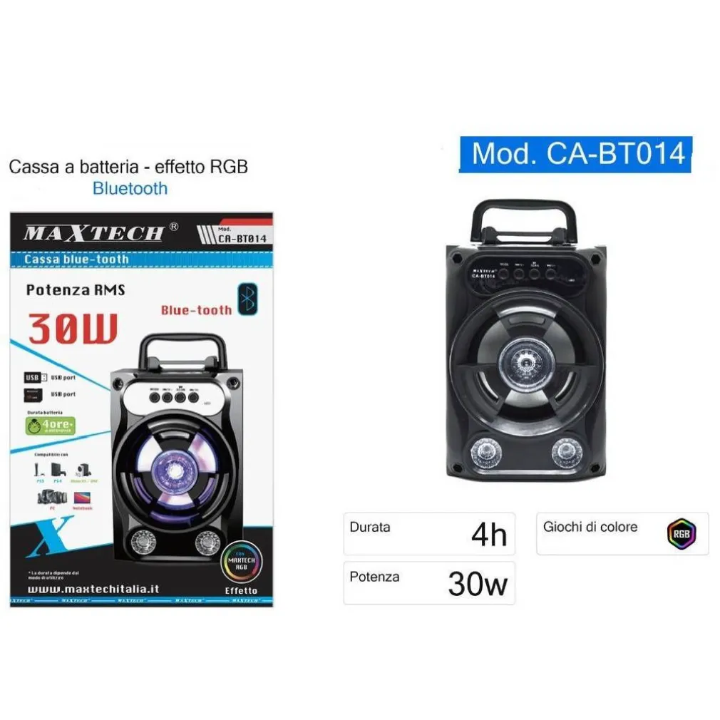 La cassa Speaker Bluetooth offre un’ottima qualità del suono. Supporta dispositivi con Bluetooth. Associazione facile e veloce. L’altoparlante è uno speaker portatile per ascoltare tutta la tua musica preferita ovunque vorrai. Semplice da usare, possiede una maniglia così da poter essere trasportato con facilità. Con la funzione Bluetooth potrai connetterlo senza fili con smartphone, PC e tablet. Innovativo speaker Bluetooth con effetto RGB che cambia colore.