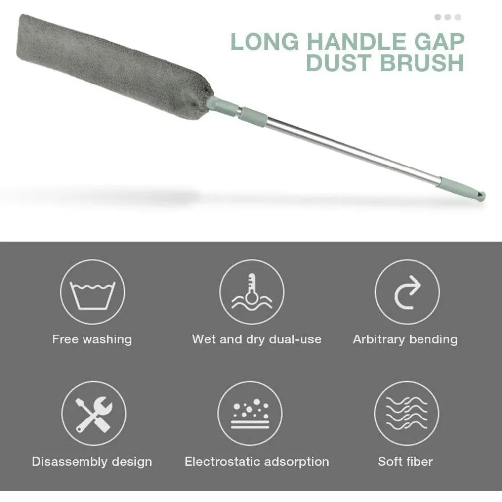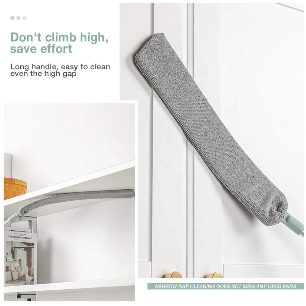 Pulisce facilmente e velocemente grandi superfici. La superficie del panno in microfibra utilizza milioni di minuscole fibre per intrappolare rapidamente polvere, sporco e allergeni in modo da poter pulire senza sforzo e senza utilizzare sostanze chimiche dannose. Pulire gli spazi più stretti La piastra è abbastanza sottile per pulire anchegli spazi più stretti e svolgere compiti che un normale spolverino non può fare. Potrà pulire sotto letto, gli spazi sotto il divano o qualsiasi altro spazio e rendere la casa più pulita. Asta telescopicaIl catturapolvere ha un’asta telescopica, che le consentirà di pulire a qualsiasi altezza che non può raggiungere in altro modo. Senza la preoccupazione di cadere dall’alto, proteggendo la sua sicurezza. PieghevoleLa piastra può essere piegata in qualsiasi angolazione e i materiali di alta qualità gliconferiscono una buona elasticità. Non dovrà preoccuparsi che piegature eccessive possano causare danni ed è quindi molto utile per pulire gli spazi con diverse angolazioni .