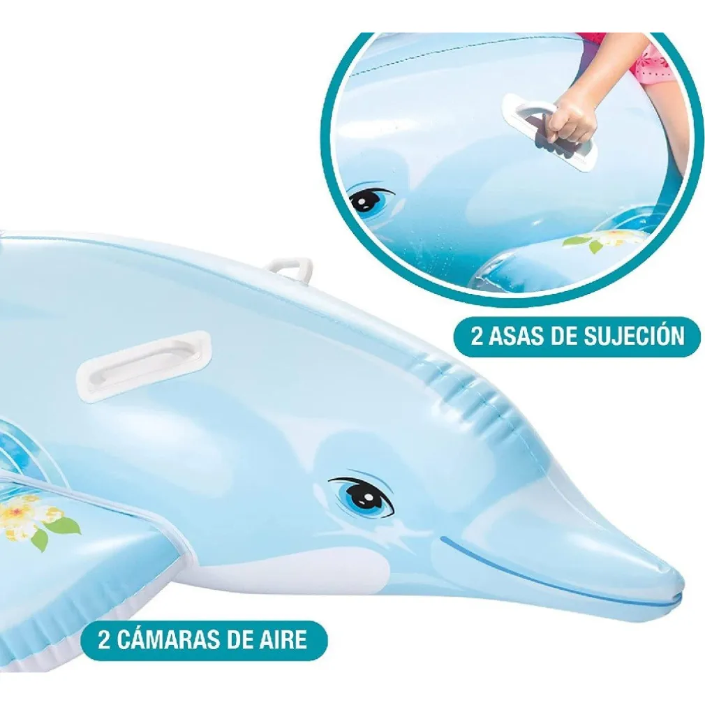 Cavalca le onde con il tuo animale preferito! Ti sembrerà di essere immerso nell’oceano. Scegli il delfino e dai inizio al divertimento in acqua! Simpatico cavalcabile a forma di Delfino, con due solide maniglie a cui aggrapparsi, in PVC da 0.25 mm.
