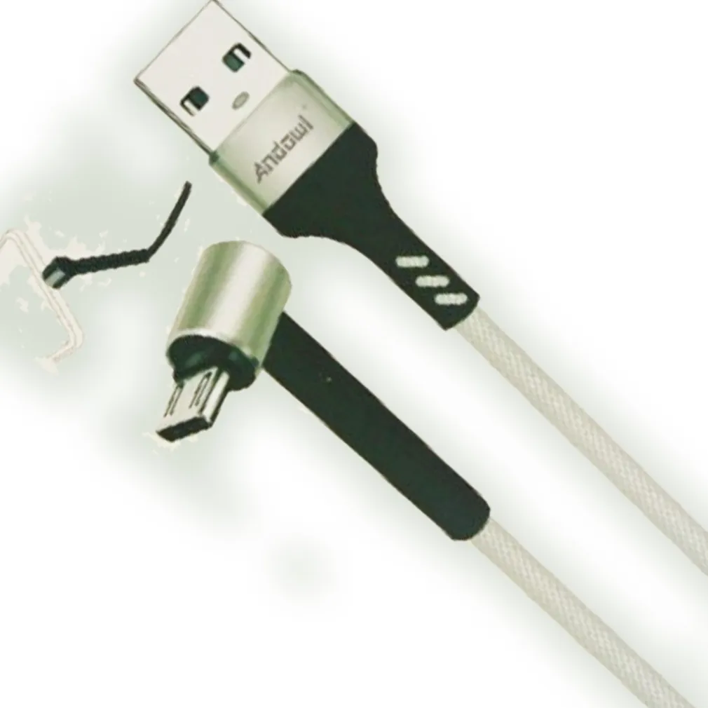 Cavo di ricarica e dati micro usb alta velocità di trasmissione usb 2.0. Accessorio per telefoni cavo di ricarica moderno design. Cavo con connettore micro USB. È adatto per caricare dispositivi con porta micro USB, come telefoni cellulari, tablet, lettori MP3 e fotocamere digitali. È rivestito con un tessuto a maglia per evitare fastidiosi grovigli e nodi, rendendolo resistente all’usura. L’angolo di 90 gradi della presa di ricarica lo rende comodo per giocare o guardare video mentre il dispositivo è in carica.