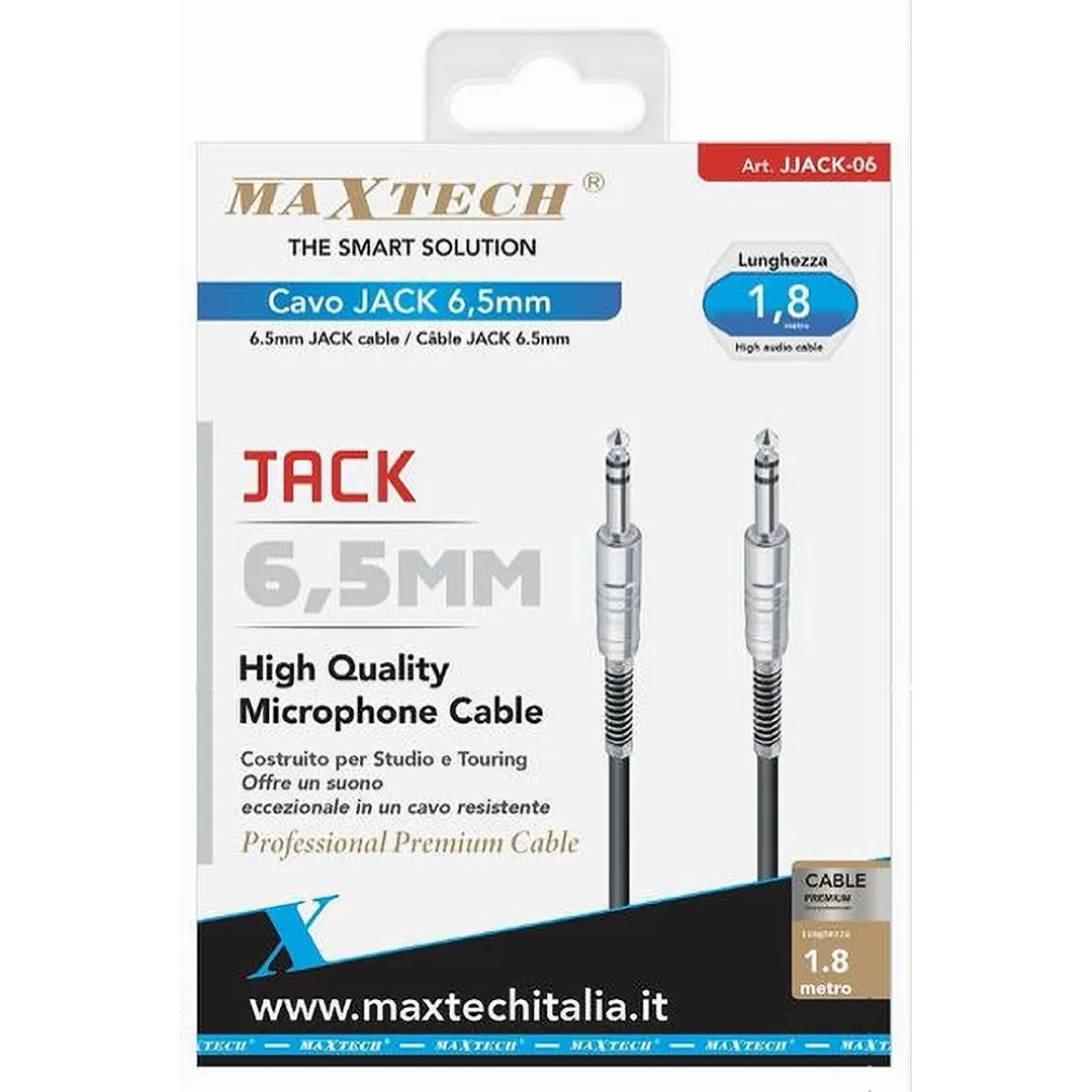 Il cavo audio stereo JJACK-06 è progettato per chi cerca un suono cristallino senza compromessi. Grazie ai suoi connettori maschio da 6.5mm su entrambe le estremità, è perfetto per collegare microfoni, strumenti musicali e linee audio. Con una lunghezza di 1,8 metri, ti offre la flessibilità necessaria per tutte le tue esigenze di cablaggio, sia in studio che in live performance.