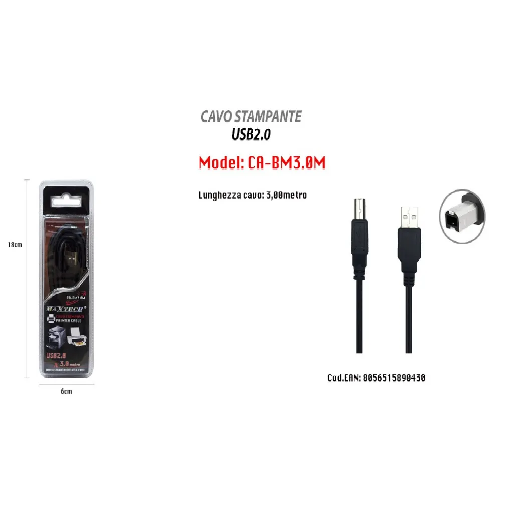 Cavo indispensabile per il collegamento di dispositivi caratterizzati da connettori USB. Si tratta di un prodotto universale, impiegabile con i dispositivi di qualsiasi marca. Completamente Schermato (per ridurre le interferenze elettromagnetiche con altre apparecchiature e migliorare la trasmissione dati). Copriconnettori in PVC pressofusi. Rivestimento plastico resistente alle temperature