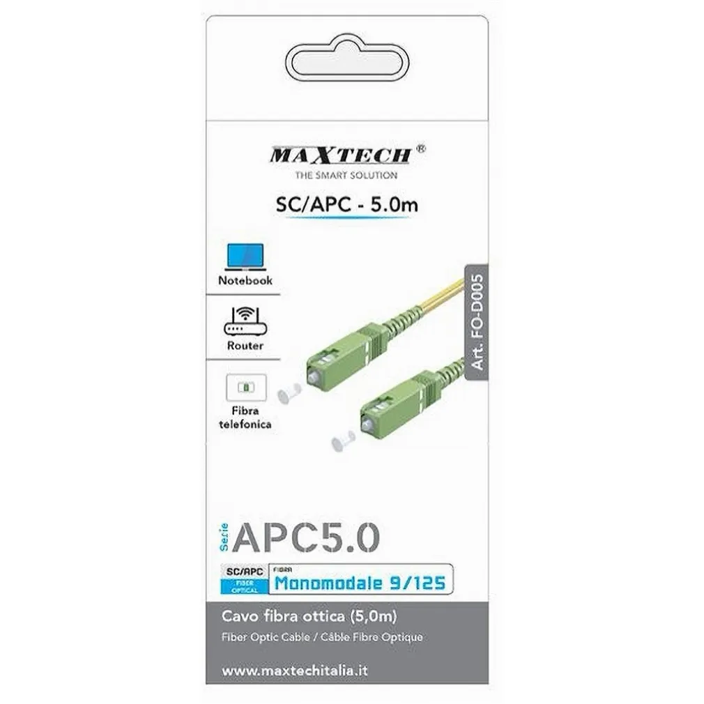 Cavo Fibra Ottica Monomodale 9/125 SC-APC 5MT per Router e Notebook – FO-D005-5.0M