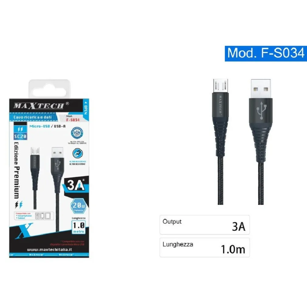 - Cavo 1 metro con connettori USB-A a Micro USB