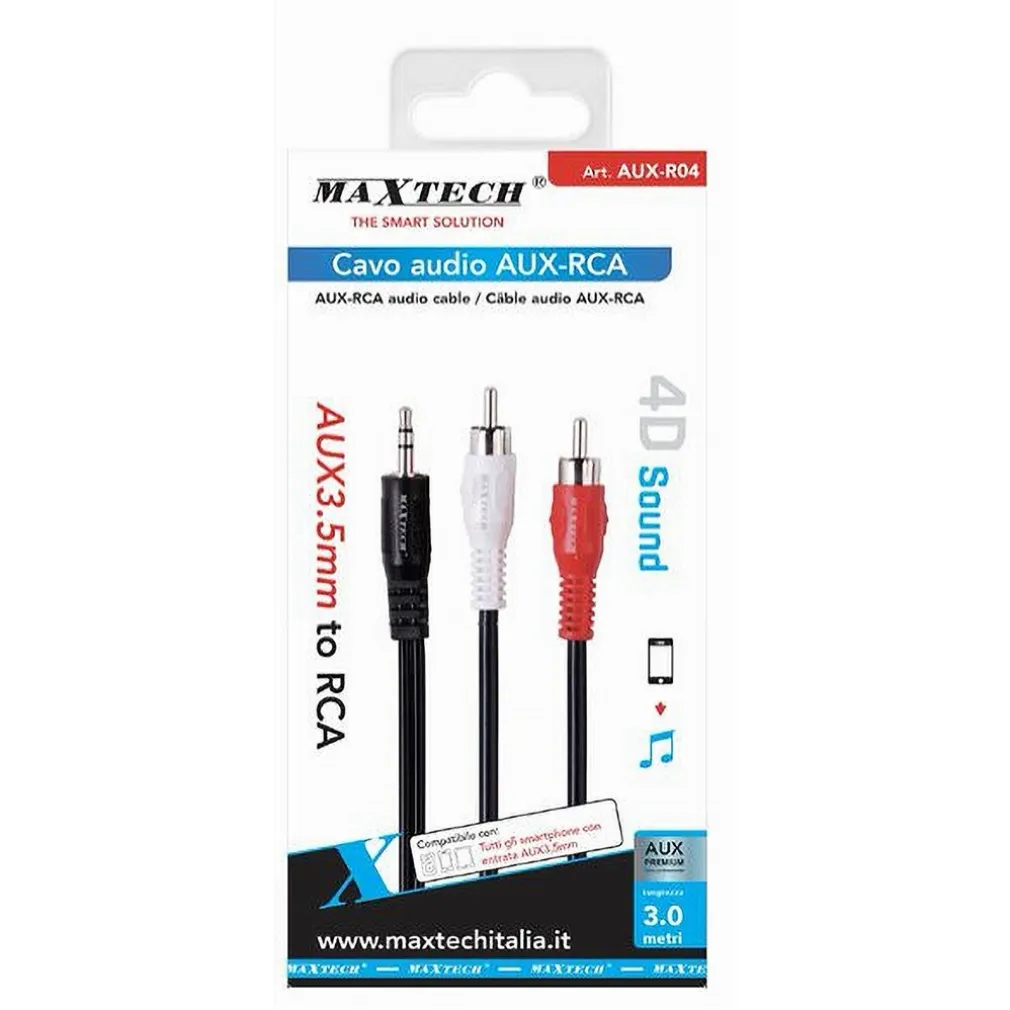 - Collegamento AUX 3.5mm a 2x RCA per una compatibilità estesa con numerosi dispositivi audio.