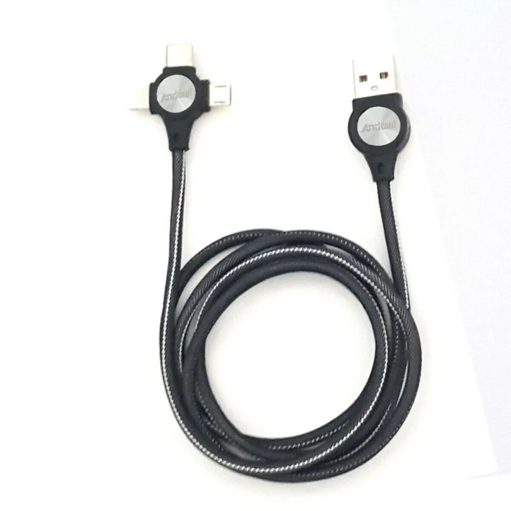 Cavo USB 3 in 1 Type-C MICRO USB, LIGHTNING: consente di ricaricare da parete (caricabatterie da parete non incluso) o da computer, di uploadare e di importare dati. Cavo in tessuto, Maggiore resistenza all’usura, Design leggero, compatto e pratico. ll cavo vi consente di importare o esportare dati sul e dal vostro dispositivo con facilità e velocità elevate, fungendo anche da efficace caricabatterie USB per il dispositivo in vostro possesso.