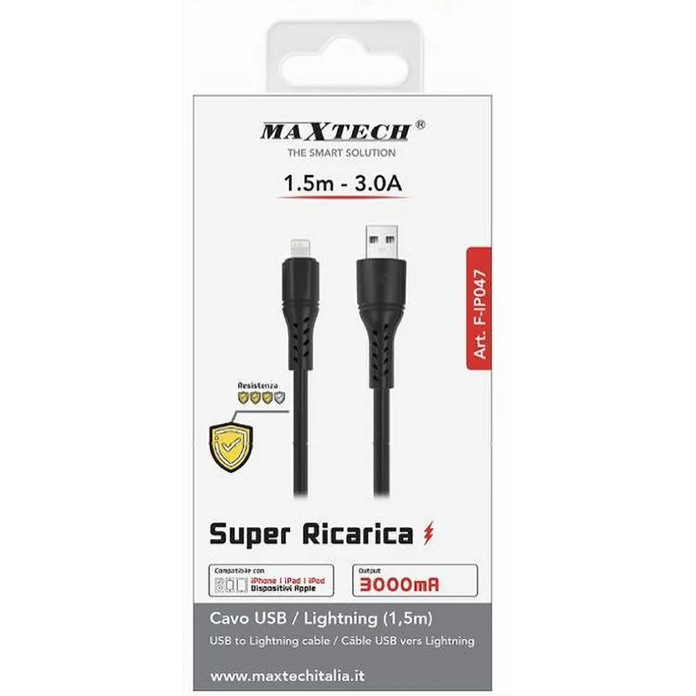 Cavo USB Lightning 3A 1.5MT Super Ricarica Dati Resistente per iPhone, iPad, iPod F-IP047