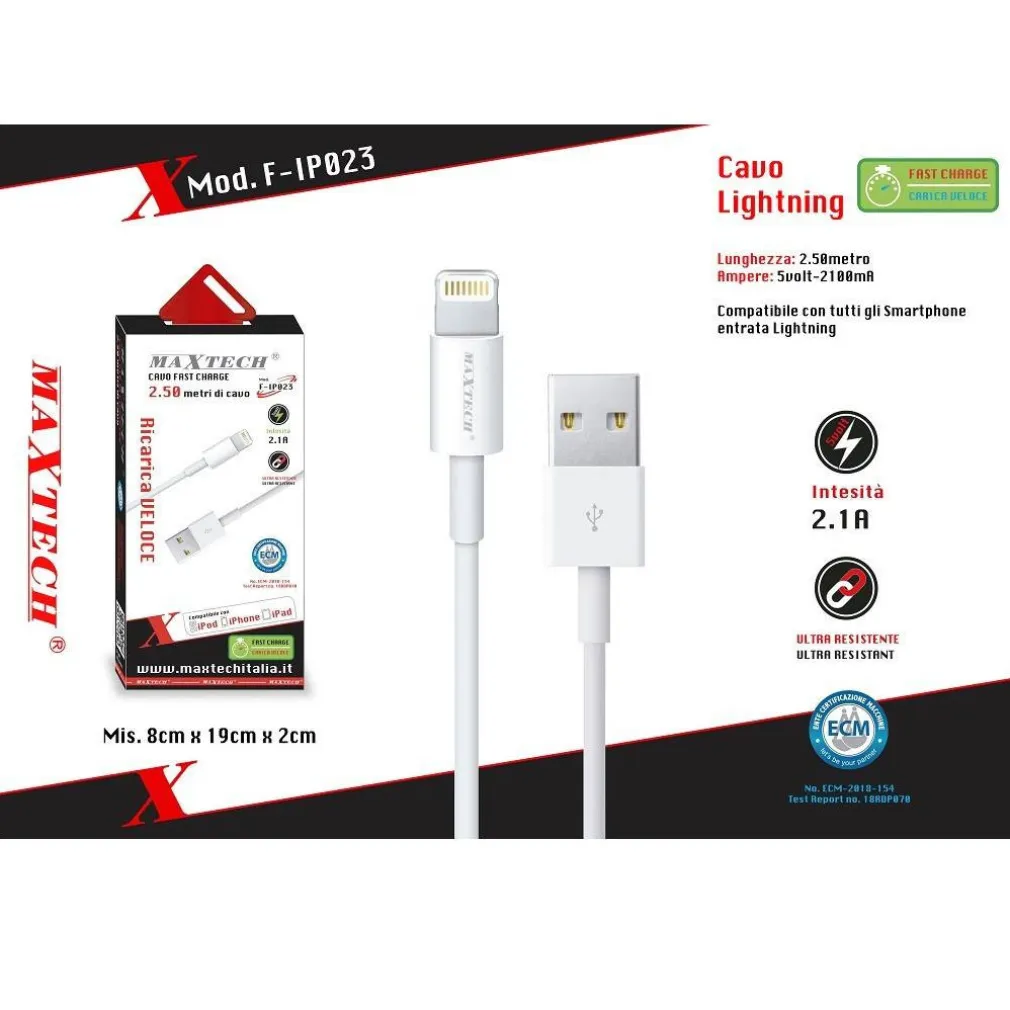 Cavo USB ad altissima velocità di trasmissione, utile per collegare l’iPhone, iPod, iPad e smartphone con connettore Lightning alla porta USB del tuo computer per ricaricare e sincronizzare il dispositivo, oppure all’alimentatore USB per ricaricarlo in tutta comodità da una presa di corrente.