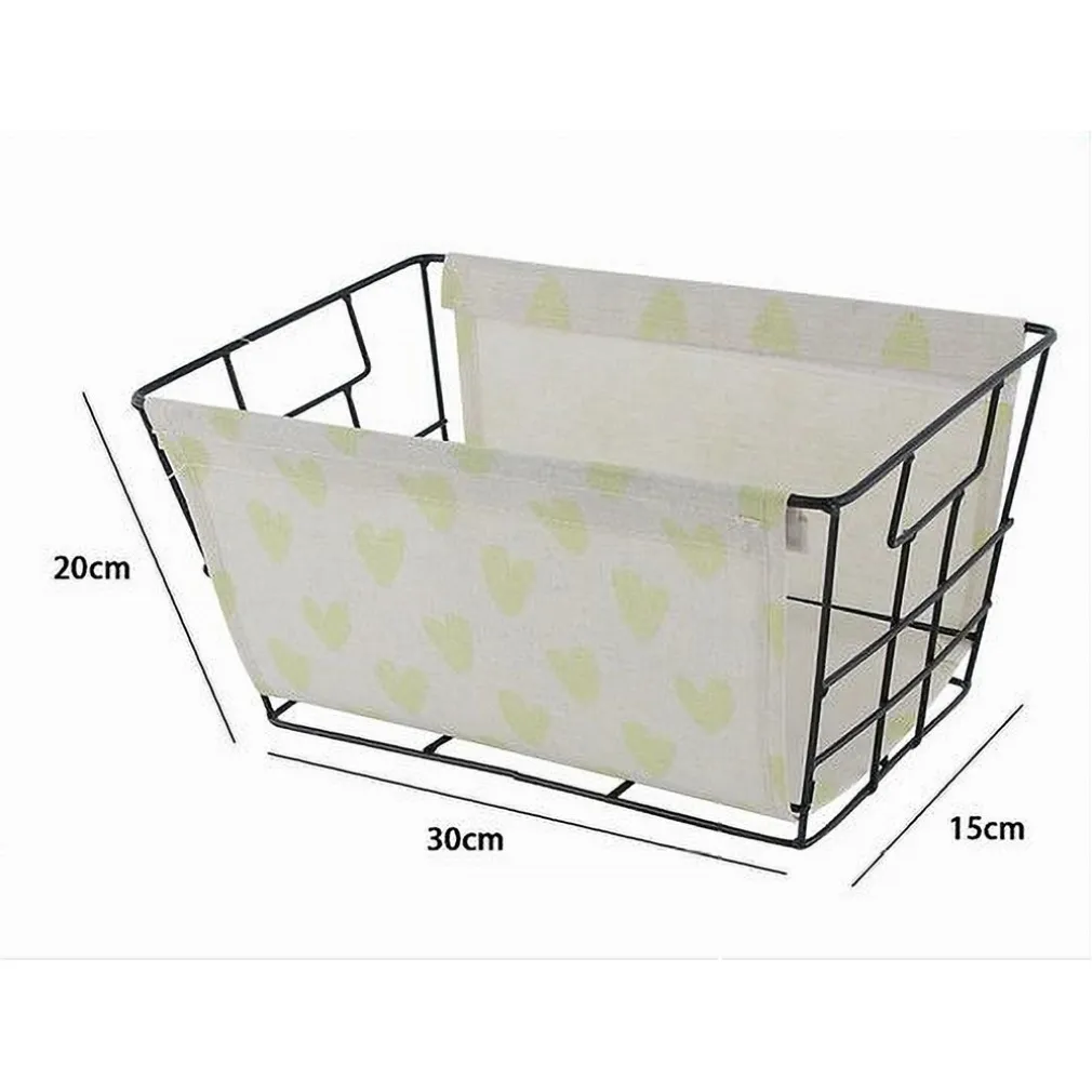 Cesto Porta Oggetti in Ferro e Tessuto Stampa Cuori Gialli con Manici 30x20x15cm – 10617