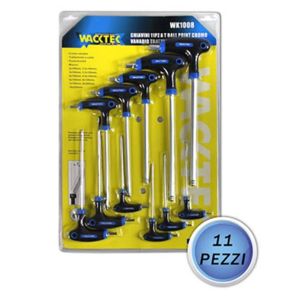 Robuste, resistenti e dal design accattivante sono dotate di impugnatura antiscivolo ed ergonomica a T per consentirvi una migliore presa. Ogni chiave è proposta, poi, con un’utilissima “end ball” che vi permetterà di avvitare e svitare fino ad un’angolazione di 30°. Grazie ai fori posti sulle impugnature potrete riporre la vs. chiavi anche su pareti. Interamente costruite in cromo vanadio sono un immancabile alleato per gli amanti dell’ hobbistica e fai da te.